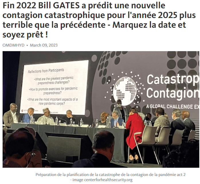 < Le 23 octobre 2022, Gates, Johns Hopkins et l’Organisation mondiale de la santé ont organisé conjointement « un exercice de défi mondial » baptisé « Contagion catastrophique », impliquant un nouvel agent pathogène appelé « syndrome respiratoire épidémique sévère à entérovirus 2025 » (SEERS-25), qui touche principalement les enfants et les adolescents.