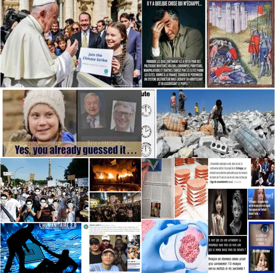 Le climat à sauver pour nous taxer, nous culpabiliser en tant que citoyens sur l’état de la planète ! Pas un mot sur les réelles causes de ces dérèglements climatiques, aucune mention de la géoingénierie, des armes à énergie dirigée, du rayonnement micro-ondes dangereux de la 5G et la toxicité du compteur Linky, de l’empoisonnement ciblé de tout le vivant, avec les humains en ligne de mire pour une réduction des populations, des modifications de notre ADN, une réorientation géopolitique et physique des zones peuplées, la planification des vagues migratoires pour suivre l’agenda 21 pourtant tant détaillé et exposé au grand jour, afin de nous faire perdre nos repères et générer de l’adrénochrome de masse via l’angoisse, l’anxiété sur l’insécurité ambiante!