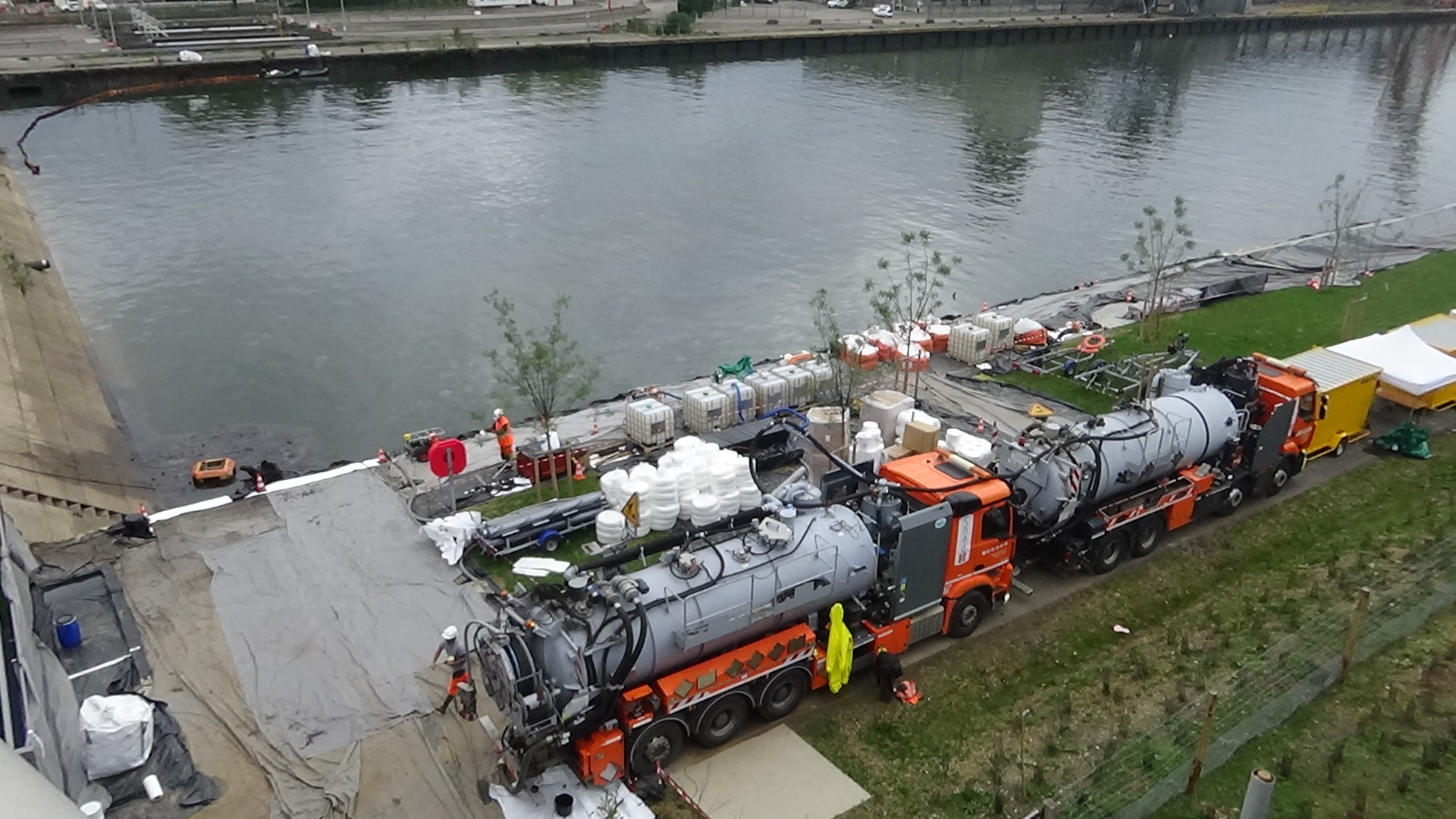 Après l’explosion et l’incendie, il faut dépolluer les sols, les résidus des 5253 tonnes de produits et sortir les fameux fûts stockés dans l’entreprise.