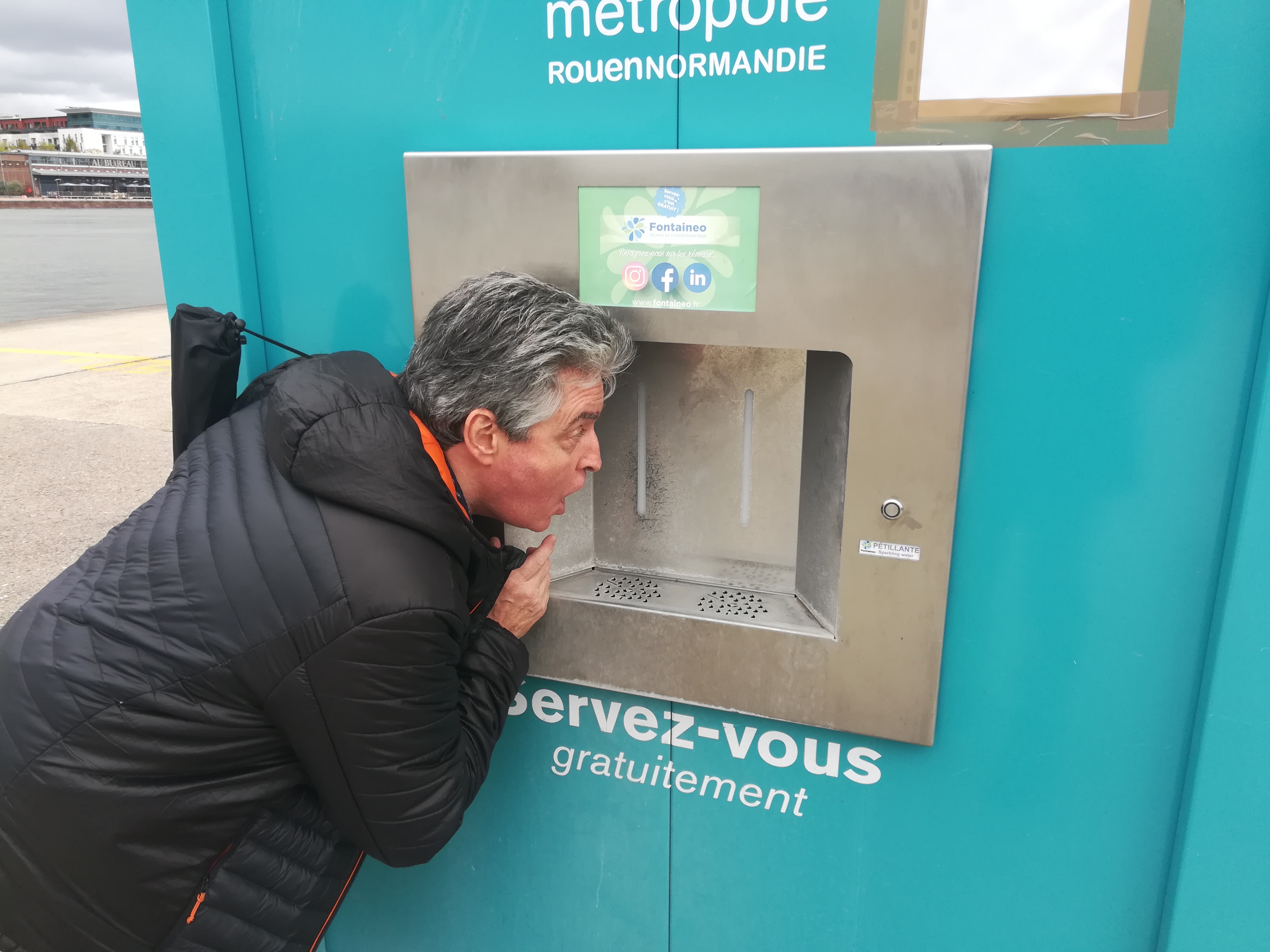 Le cynisme de cette vision du panneau du distributeur d’eau potable en face de la CREA hors service… on a envie de crier « encore heureux »! Mais en fait, c’est quoi le vrai bonheur? Éviter les poisons violents instantanés, et étaler leurs effets sur quelques années ou décennies de plus? Leur vrai programme est la stérilisation de masse, la perturbation endocrinienne de notre ADN, et la dépopulation rampante par le gazage empoisonné des « citoyens » à zombifier un peu plus…