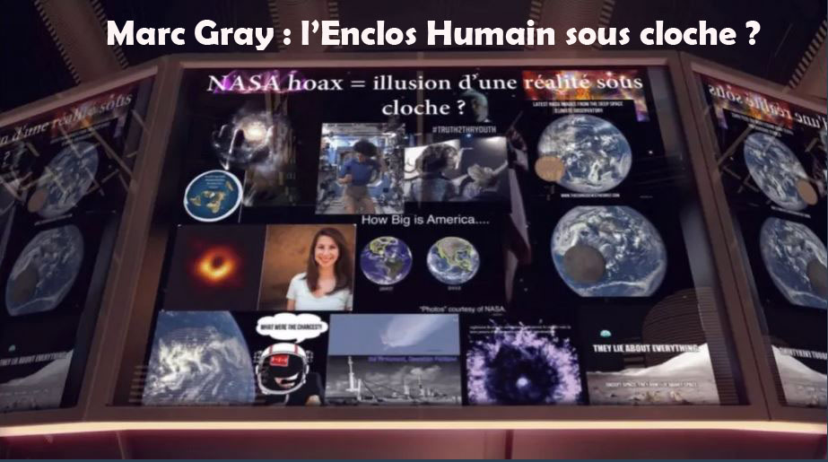 Marc Gray : l’Enclos Humain sous cloche ? Un passage extrait de ma vidéo sur la chaîne des Sentiers Du Réel, concernant l’enfumage de la NASA, et notre environnement sous le dôme, sous cloche.. L’espace serait-il l’ultime arnaque de notre illusion ? La vidéo d’origine : L’enclos humain: quelle libération? – Marc Gray https://www.brighteon.com/d964dcae-c9ae-4e61-a576-db71409087e5